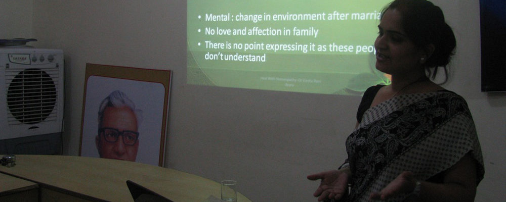 | 26. | Role of Mother’s emotional state for Pediatric case at South Delhi Homeopathic Association | South Delhi Homeopathic Association | New Delhi, India | October 2014 |